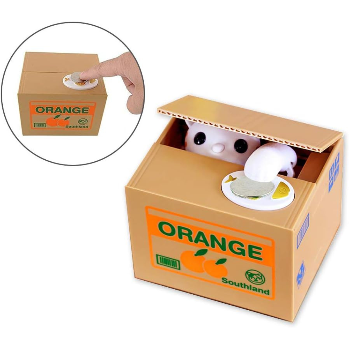 ¿Tu pequeño ama los gatitos y está aprendiendo a ahorrar? Esta original alcancía automática hará que cada moneda sea una experiencia divertida. ¡Un tierno gato aparece desde la caja y “roba” la moneda con su patita! Una forma mágica y educativa de fomentar el hábito del ahorro desde temprana edad.